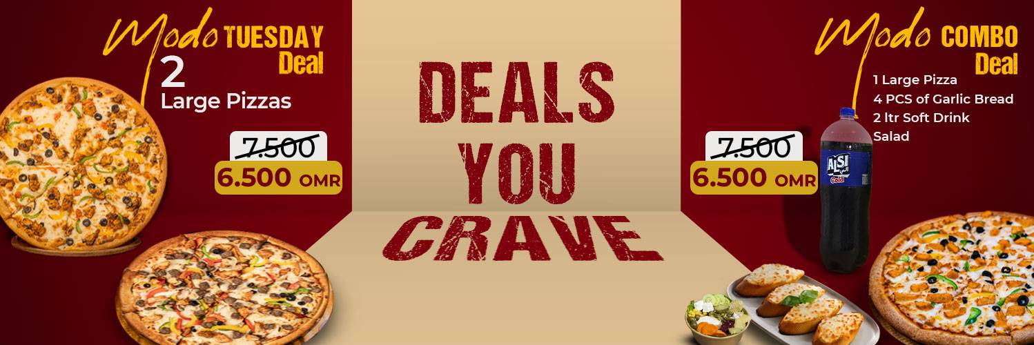 sunday dealsunday dealTuesday Deal01 SOMEWHAT AMAZING DEALS Daily Deal3 9.900 OMR Kids Meal 1.750 OMR Family Combo 15.000 OMR Sunday Deal 1.500 OMR – 3.500 OMRPrice range: 1.500 OMR through 3.500 OMR Tuesday Deal 6.500 OMR Friday Deal 5.900 OMR Daily Deal2 7.500 OMR Daily Deal1 5.500 OMR Modo Combo 6.500 OMR Modo Fajita Pizza 2.700 OMR Modo BBQ Pizza 2.700 OMR Modo Hawaiian Pizza 2.500 OMR Modo Italian Pizza 3.100 OMR Modo Meat Lover’s 2.700 OMR Modo Mutton Pizza 2.700 OMR Modo Pepperoni Pizza 2.700 OMR Modo Peri Peri Pizza 3.100 OMR View More Cheesy Chicken Fries 1.200 OMR Fresh Vegetable Salad 1.000 OMR Oven Baked Spicy Potato Wedges 0.900 OMR French Fries 0.900 OMR Cheesy Mozzarella Stick 1.800 OMR Garlic Bread Topped With Cheese ( 4pcs ) 0.950 OMR Crispy Chicken Strips 1.600 OMR Marinated Chicken Wings 1.900 OMR Chicken Burger 0.900 OMR Pepperoni Sandwich 1.200 OMR Beef Sandwich 1.200 OMR Chicken Sandwich 1.200 OMR Modo Beef Pasta 2.800 OMR Modo Prawn Pasta 2.800 OMR Modo Chicken Pasta 2.800 OMR Pomegranate 0.900 OMR Blueberry 0.900 OMR Green Apple 0.900 OMR Peach 0.900 OMR Strawberry 0.900 OMR